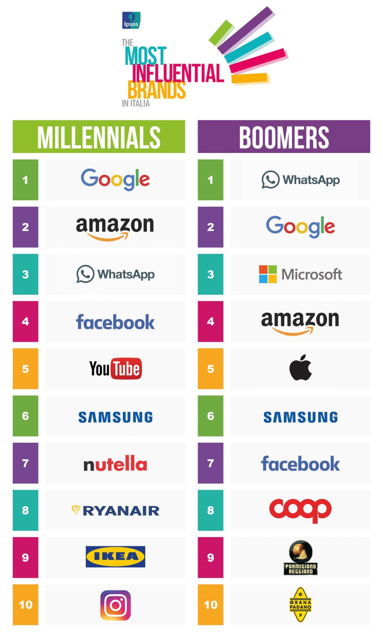 I risultati dell’indagine Ipsos “The most Influential Brands 2017”. E le differenze generazionali tra Boomers e Millennials.