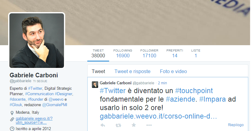 Le svela Gabriele Carboni: ha costruito la sua reputazione online grazie a Twitter: 7mila follower in un anno. Ecco la sua strategia in 10 punti.