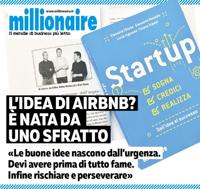 «Le buone idee nascono dall’urgenza. Devi avere prima di tutto fame e poi rischiare e perseverare». Così Joe Gebbia, co-founder di Airbnb, sito di affitti brevi in pieno boom in tutta Italia, ci ha raccontato come è nata l’idea di Airbnb. La raccontiamo su Startup, Sogna, Credici, Realizza (Hoepli), il nostro libro già arrivato alla terza ristampa, e oggi domenica 30 luglio a Radio Monte Carlo (ore 18,15) con Rosaria Renna.