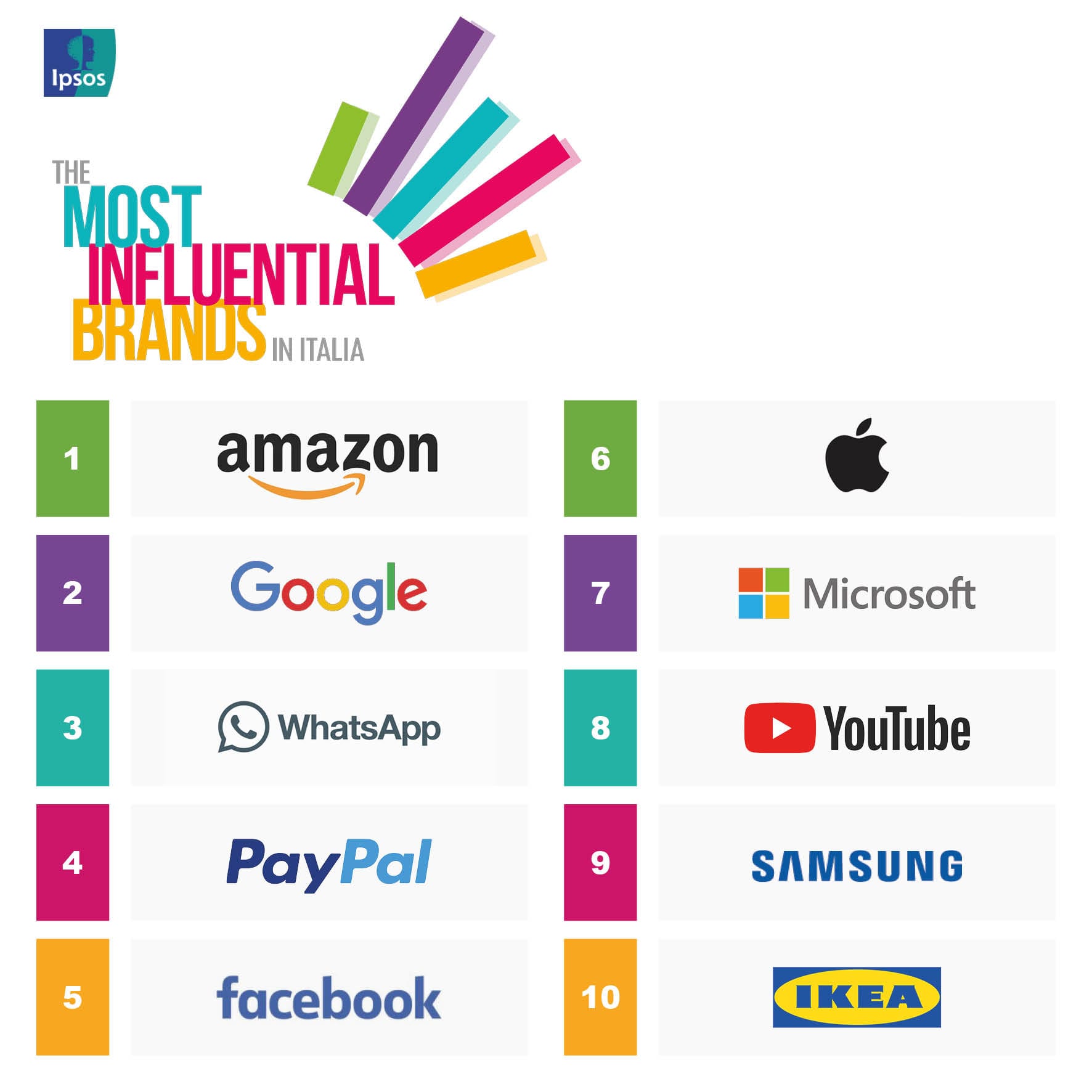 Come nel 2017, la top 10 è dominata dalle grandi multinazionali, soprattutto tecnologiche, con due new entries: Paypal (4) e Ikea (10) che ha preso il posto di Nutella (quest’anno dodicesima).