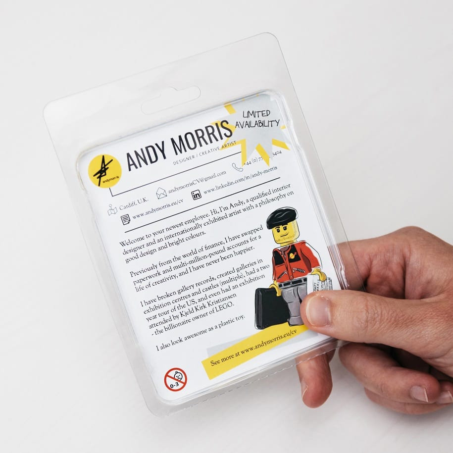 Un giovane artista britannico, con un passato nella finanza, ha trovato un modo originale per “scrivere” il suo curriculum e cercare lavoro. Ha creato una riproduzione di sé con i Lego e ha confezionato il giocattolo inserendo il cv nell’imballaggio. Così Andy Morris, 34 anni, gallese, spera di trovare il lavoro dei suoi sogni in un’azienda che rispecchi la sua ambizione creativa. «Lo sto ancora cercando, ma sicuramente questa iniziativa mi sta dando delle opportunità uniche» ha detto a Millionaire.
