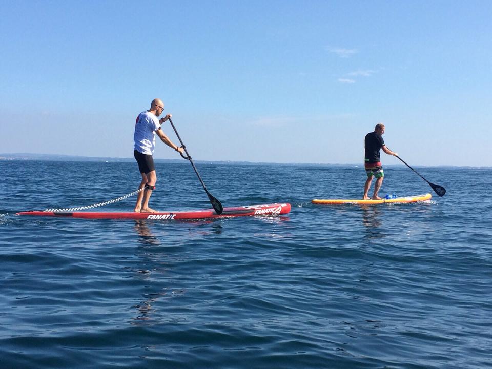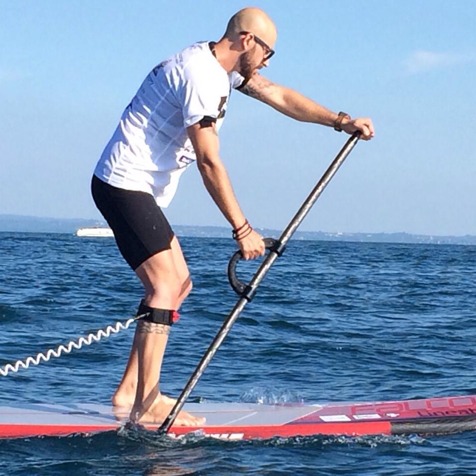 Agente di commercio nel settore arredo bagno, realizza il suo sogno: attraversare da sponda a sponda il lago di Garda con il Sup (acronimo di stand up paddle), sport in cui si rema in piedi su una tavola da surf.