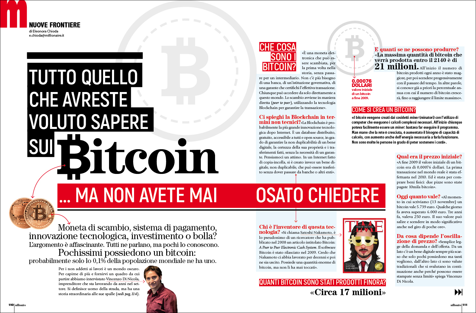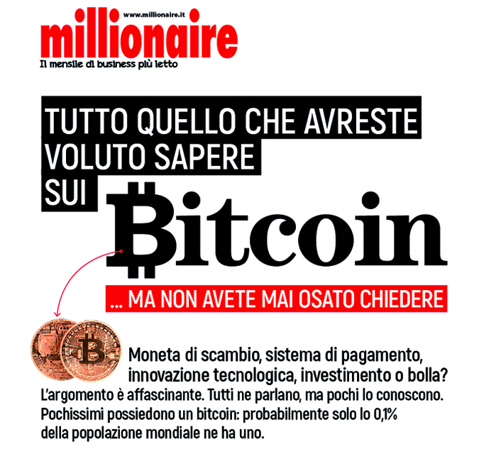 Tratto dall’articolo “Tutto quello che avreste voluto sapre sui bitcoin” pubblicato su Millionaire di dicembre/gennaio 2018. Per acquistare l’arretrato scrivi a abbonamenti@ieoinf.it