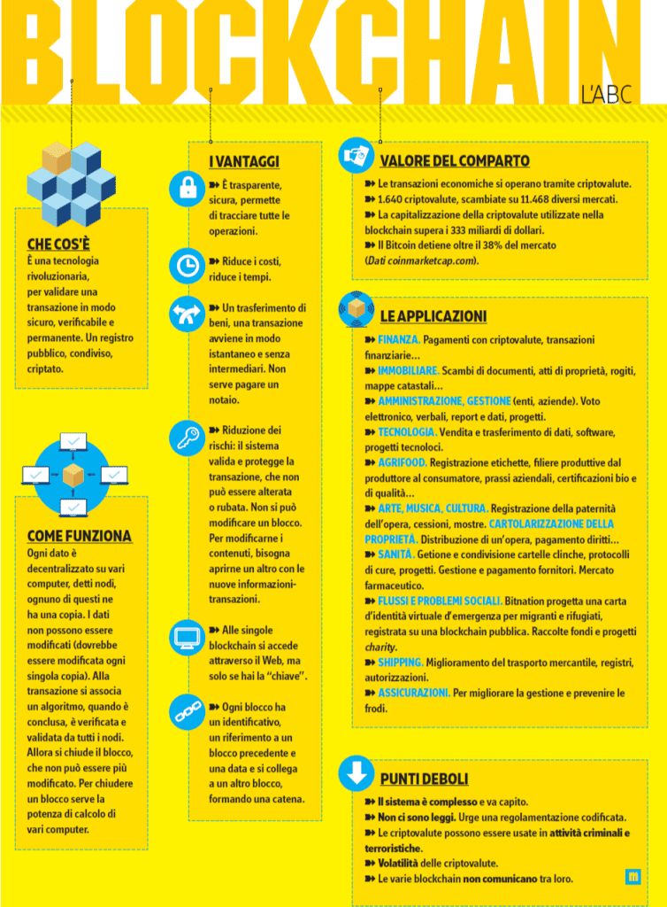 È una tecnologia rivoluzionaria, per validare una transazione in modo sicuro, verificabile e permanente. Un registro pubblico, condiviso, criptato.