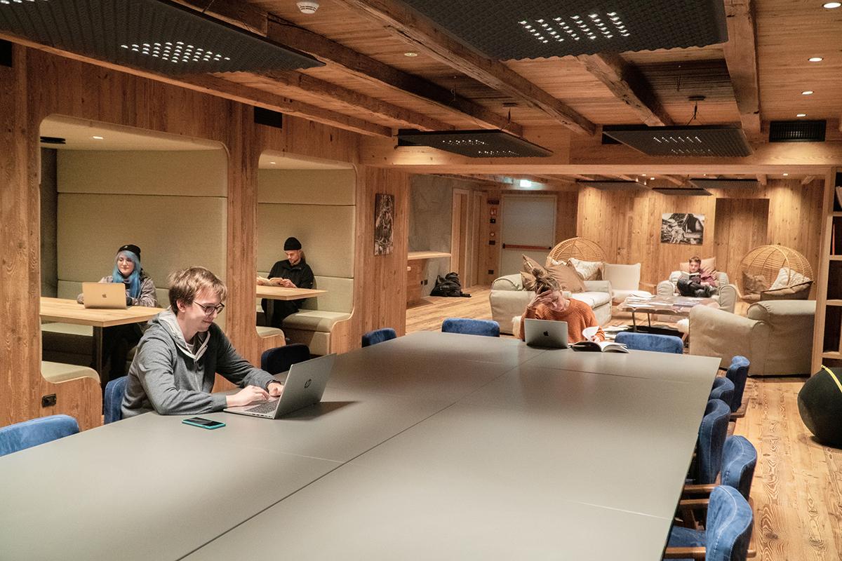 Del nuovo “headquarter” ci hanno colpito in particolare due realtà: l’alta cucina di Kosmo – Taste the Mountain e lo spazio coworking. Servizi e spazi che uno non si aspetterebbe in alta montagna. Come sono nate queste iniziative e come ha reagito la vostra clientela?