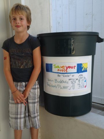 Da quel giorno il bambino se ne va in giro per il quartiere con la sua bici e un rimorchio attaccato dietro, raccogliendo plastica, cartone e vetro. Prima da solo poi con l’aiuto dei genitori e degli amici.