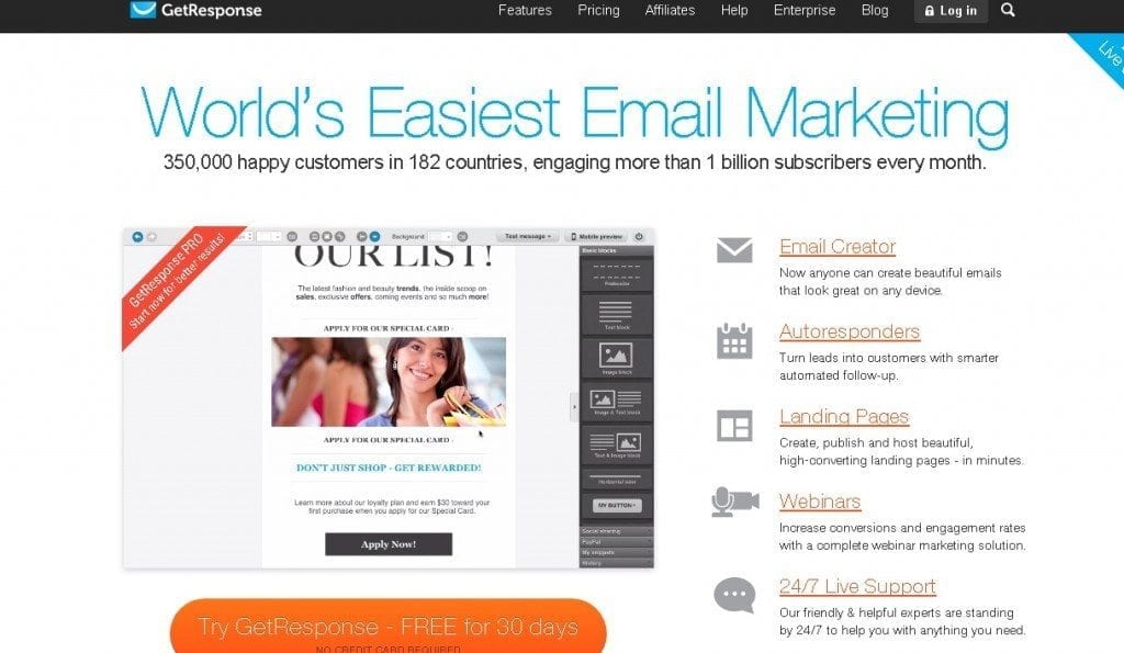A chi serve Getresponse. Chi sono gli interessati a questo strumento che oggi presento come pure ai prossimi? Qualunque piccolo imprenditore o professionista che vada oltre l’ attività puramente amatoriale sul web. Quindi ogni imprenditore, marketer, networker e professionista , ma anche commercianti, artigiani o distributori di prodotti. All’interno dell’area marketing troviamo diverse azioni che possono generare risultati concreti: il contatto e la formazione verso il cliente sono due tasselli fondamentali. Specie se si è orientati nel pianificare un processo di lead generation.Chi acquisisce contatti già profilati deve necessariamente comunicare quotidianamente con loro. Occorre infatti formare il potenziale cliente al proprio prodotto o servizio, con lo scopo di trasformarlo in cliente pagante. Con quale azione è possibile fare questo? Ovviamente ci sono tanti metodi, di cui in futuro parleremo, ma il più utilizzato è ovviamente l’utilizzo delle e-mail. La posta elettronica è ancora un ottimo mezzo per comunicare messaggi commerciali (e non) al proprio pubblico. L’utilizzo delle e-mail risulterà ancora più utile se l’imprenditore utilizza una landing page, ossia una pagina web specificamente strutturata per “catturare” le e-mail dei potenziali clienti. La cosa sorprendente è che oggi esistono software appositamente concepiti per effettuare tale lavoro in maniera completamente automatica. Esistono infatti programmi capaci di gestire le caselle di posta elettronica dei lead o clienti, in maniera veloce, automatica e soprattutto economica.