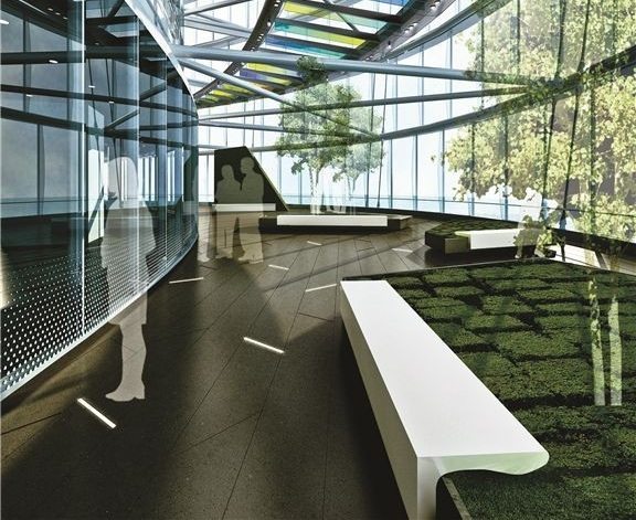 A completare il quadro, anche una serie di giardini agli ultimi piani del grattacielo, concepiti come oasi private per impiegati e ospiti.