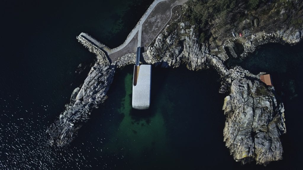 «Under è una progressione naturale della nostra voglia di andare oltre i limiti» spiega Kjetil Trædal Thorsen, fondatore dello studio di architettura Snøhetta che ha realizzato il progetto. «In questo edificio, puoi trovarti sott’acqua, sul fondale marino, a metà tra terra e mare. Questo ti offre nuove prospettive e nuovi modi di vedere il mondo, sia al di sopra sia al di sotto del livello dell’acqua».