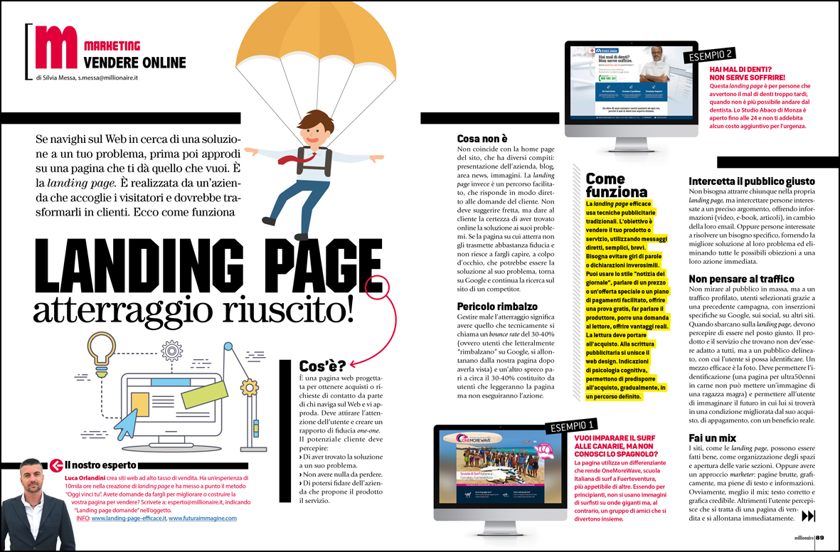 Leggi l’intero articolo, con esempi di Landing page che funzionano, su Millionaire settembre 2016!