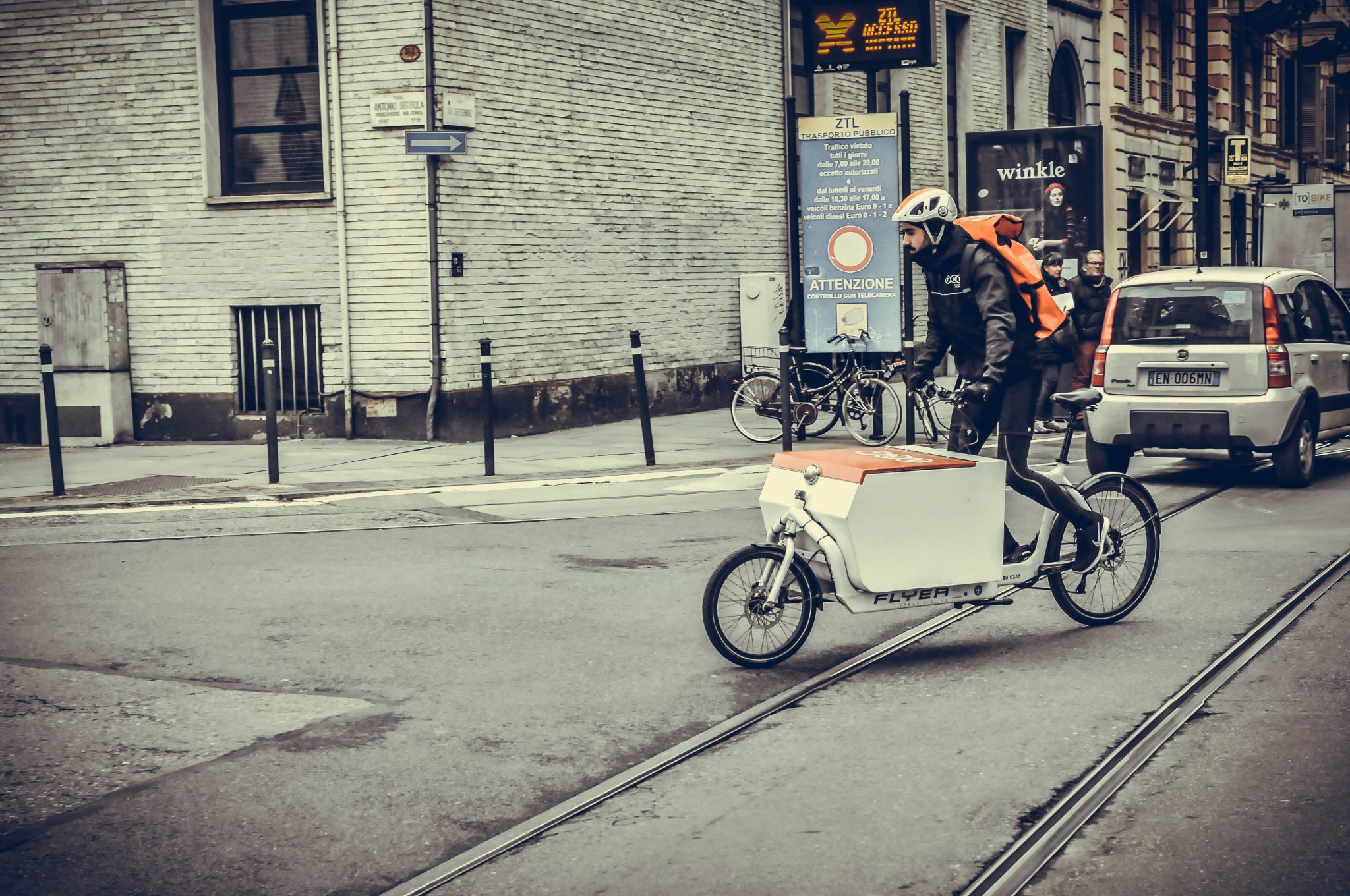 «Sono partito da zero, il giorno in cui ho deciso che avrei smesso di lamentarmi. Ho comprato una bicicletta elettrica alla Decathlon (lo sai che ho ancora lo scontrino?) e ho aperto una Partita Iva. Poi ho stampato i primi volantini lasciati nei negozi e le prime consegne».