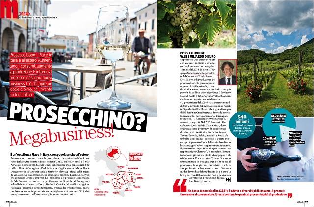 Il prosecco è un’eccellenza made in Italy che spopola anche all’estero. Aumentano i consumi, cresce la produzione, che avviene solo in 9 province italiane, tra Veneto e Friuli-Venezia Giulia, tra le Dolomiti e il Mar Adriatico. Il vino si produce da tempi antichissimi, ma è esploso nell’800 nelle colline di Conegliano Valdobbiadene. Nel 2018 sono state vendute 464 milioni di bottiglie Doc (+21% rispetto al 2017), due su tre all’estero. Oggi le tante etichette Doc e Docg sono un volano per tutto il territorio, dove agli sforzi delle aziende vinicole e di trasformazione si affiancano proposte turistiche e servizi che generano lavoro e imprese. C’è chi crea locali ad hoc, chi organizza tour in bici tra i filari, chi offre ospitalità in botti a misura d’uomo. È l'”economia del prosecco”, evidenziata da Sda Bocconi, in una ricerca per il consorzio di tutela del Conegliano Valdobbiadene prosecco Docg. Risultati? Crescita del reddito, maggiore ricchezza, crescita dei crediti erogati, anche per favorire nuove imprese. Ma anche miglioramento sociale. Più inclusione, incremento dell’istruzione, più donne imprenditrici. Ne abbiamo parlato su Millionaire di gennaio 2019. (Per acquistare l’arretrato scrivi a abbonamenti@ieoinf.it)
