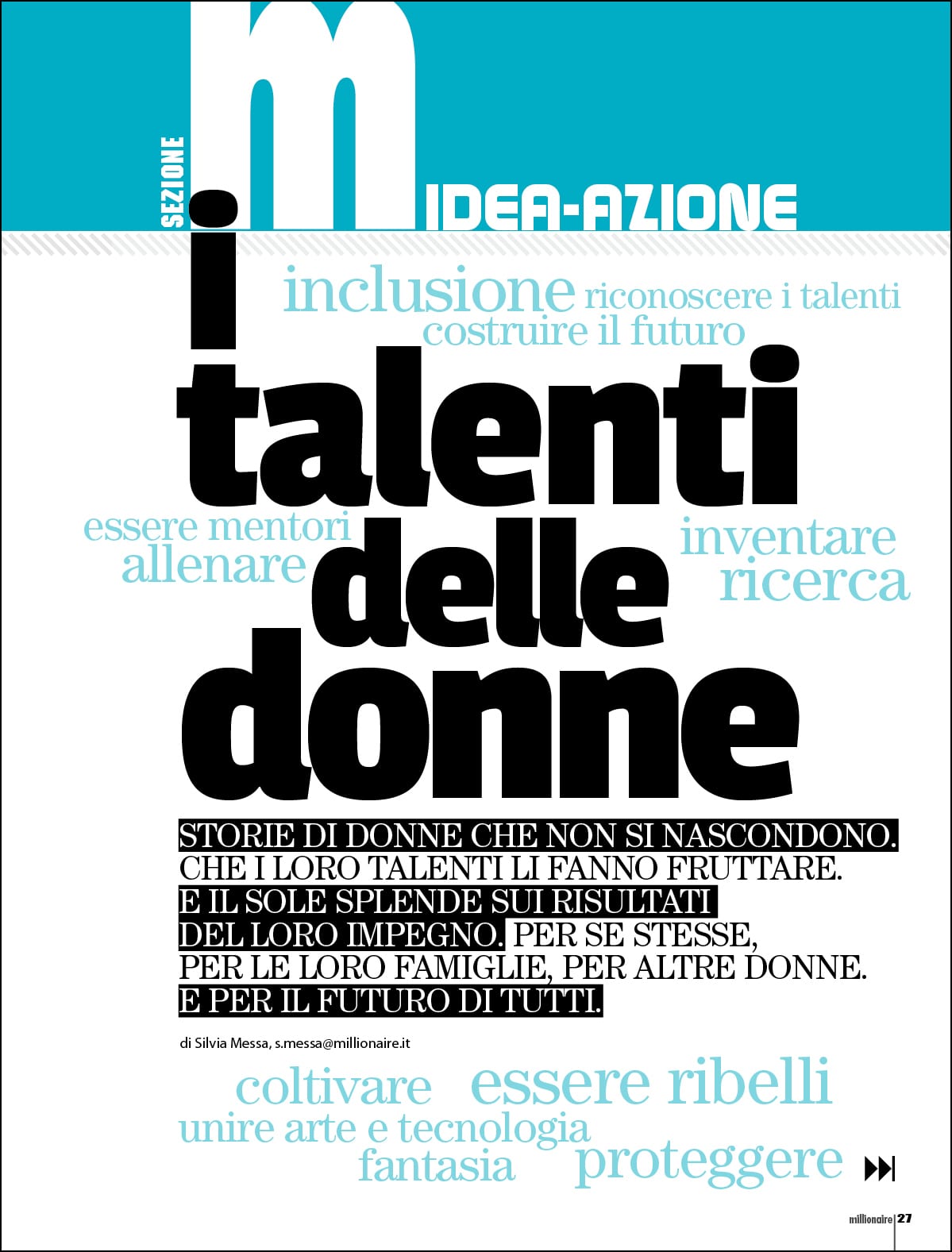 Tratto dall’articolo “I talenti delle donne” pubblicato su Millionaire di marzo 2020.