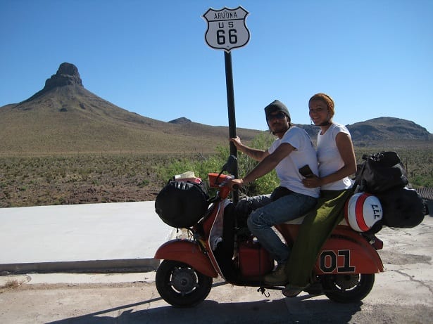 Da Chicago a Los Angeles lungo la leggendaria Route 66. Giorgio Serafino, 42 anni, è uno scrittore e viaggiatore. Nel 2010 ha mollato tutto per inseguire il suo sogno: viaggiare nel mondo a bordo della sua Vespa 50 Special, insieme alla moglie Giuliana Foresi.