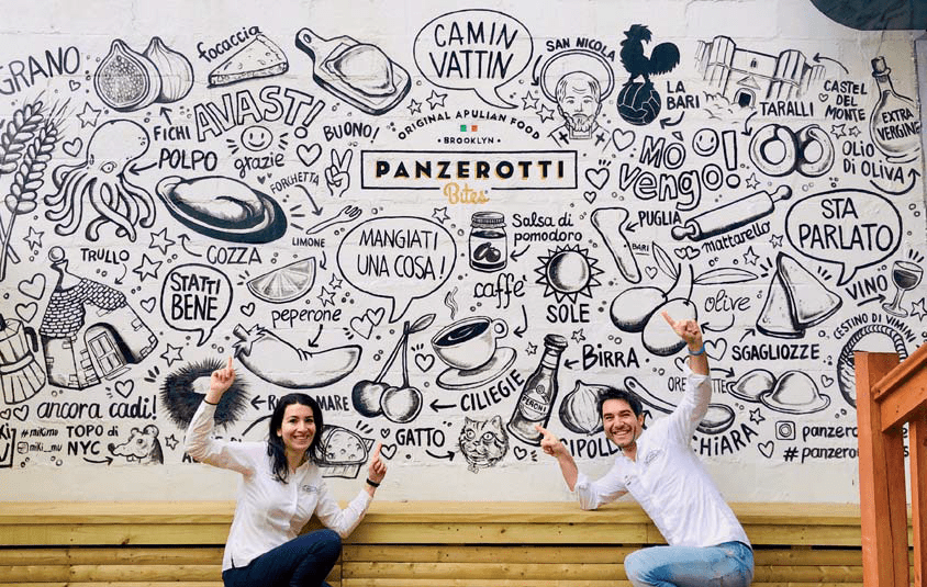 Nel 2017 trovano il locale, a Brooklyn, lo affittano, lo ristrutturano. Panzerotti Bites apre nel gennaio 2018, con un murale “pugliese” che non passa inosservato. «Abbiamo investito cinque volte quello che sarebbe stato necessario in Italia. Qui tutto costa moltissimo, compreso il lavoro degli artigiani. Ma gli affari vanno molto bene. E lo scoglio di proporre un prodotto “chiuso” è stato superato dalla qualità e dal sapore. Se tutto procede bene, tra un anno penseremo a creare una catena in franchising».