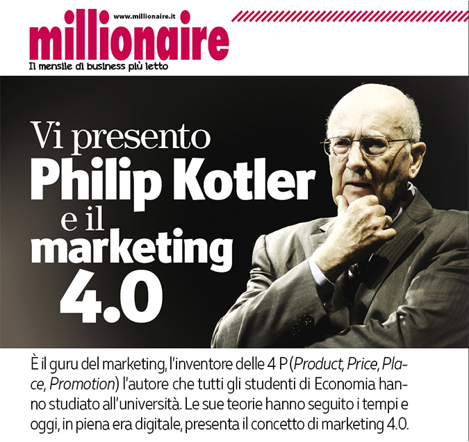 Il testo integrale dell’intervista è pubblicato sul numero di Millionaire in edicola ancora per pochi giorni. Ecco qualche spunto in anteprima. Ma di Philip Kotler parleremo anche in radio, domenica 29 ottobre alle 12.30 su Radio Monte Carlo, ospiti di Chiara Papanicolaou e Marco Porticelli. Non perdete questa occasione di sentirci!