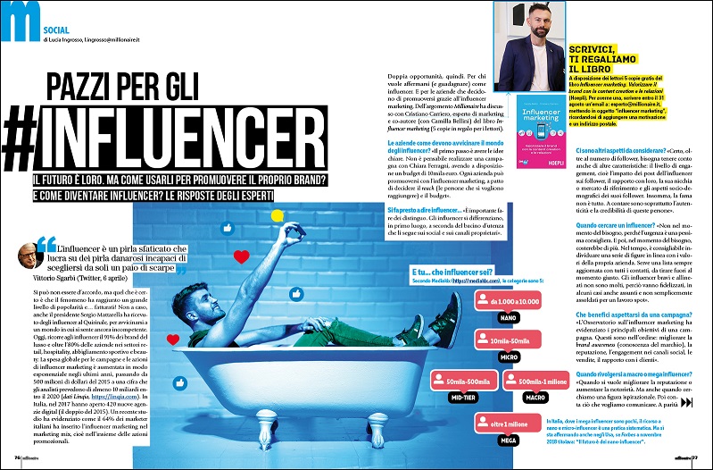 Anche su Milllionaire in edicola parliamo di influencer e influencer marketing. Con le risposte degli esperti alle domande più frequenti sul tema: perché le aziende sono disposte a spendere così tanto per un post? Su cosa puntare per promuovere il proprio brand online? E come diventare influencer?