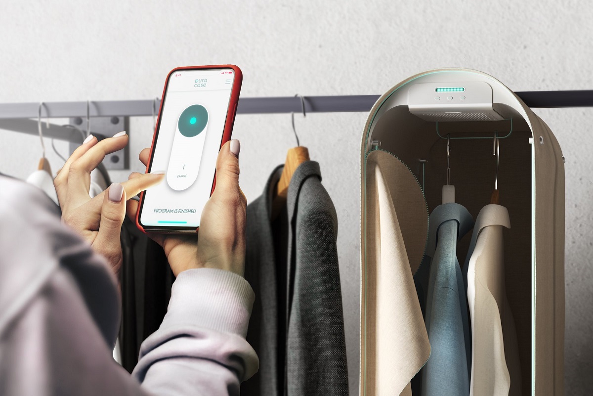 Si chiama Pura-Case e funziona (a batteria) così: si prende un capo, lo si appende all’interno della custodia (c’è spazio fino a 4 appendini), si chiude con una chiusura emetica. Usando solo una piccola quantità di energia, un sistema purificatore dell’aria a ozono disinfetta i tessuti rimuovendo allo stesso tempo il suo odore. Una volta completato il ciclo di pulizia, l’ozono (che è un gas velenoso) si trasforma in ossigeno attraverso un processo di decadimento naturale. E il porta-abiti dopo un po’ potrà essere aperto senza problemi.