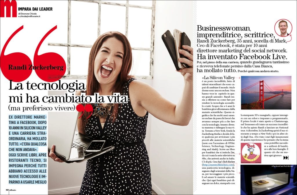Tratto dall’articolo Randi Zuckerberg: «La tecnologia mi ha cambiato la vita (ma preferisco vivere)» pubblicato su Millionaire di dicembre/gennaio 2018. Per acquistare l’arretrato scrivi a abbonamenti@ieoinf.it
