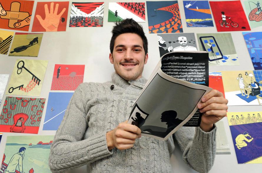 [blockquote align=”center” variation=”red”]Rompevo le scatole a tutti, dagli art director ai direttori di giornale italiani. Telefonavo, chiedevo appuntamenti, mandavo email con i miei disegni. In questo modo ho ottenuto i primi incarichi. Ma era dura, mi chiamavano una volta ogni tanto, per arrotondare facevo il decoratore. Poi un giorno ho pensato: perché non provare a scrivere un giornale straniero?