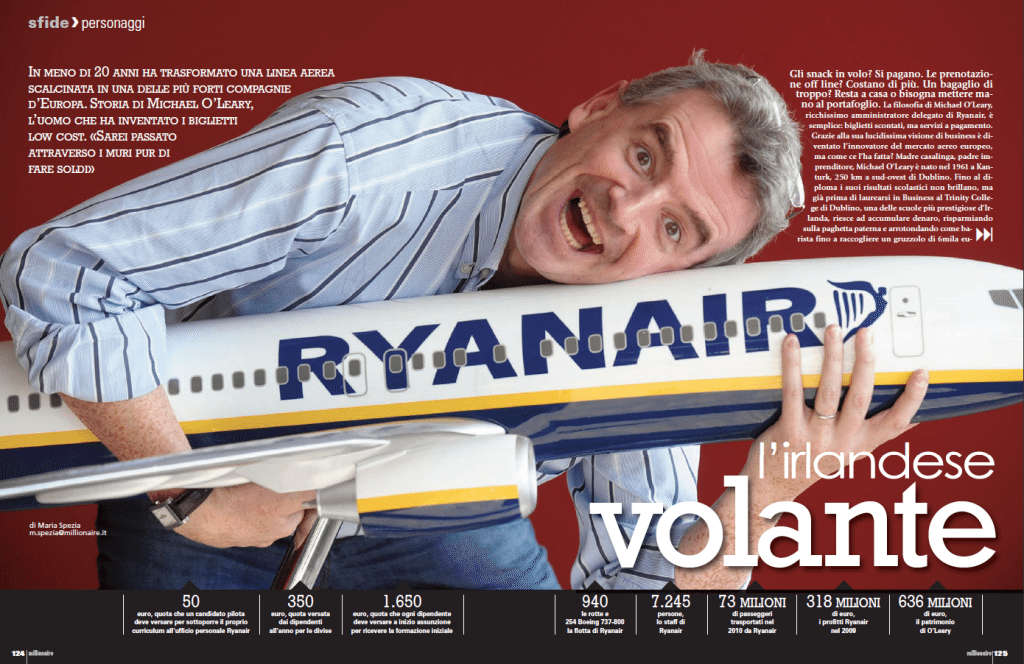 La storia di Michael O’Leary, qui in sintesi, è stata pubblicata su Millionaire dei mesi scorsi.