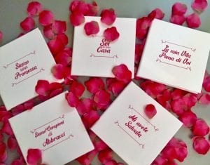 Il progetto originario, cartaceo, nasce nel 2013. Come funziona? Mapi parla con gli sposi separatamente (nessuno dei due sa cosa dice l’altro). Poi scrive il racconto di entrambi e, insieme a loro, sceglie una copertina. Il libro è un ricordo per gli sposi e un dono per gli ospiti.