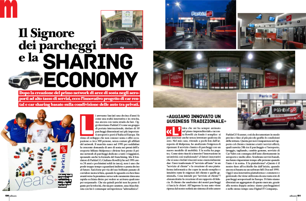 «L’idea che mi ha sempre animato sul piano imprenditoriale» racconta Rovelli «in fondo è semplice: si può innovare anche senza inventare qualcosa da zero. Nel mio caso, vivendo a pochi km dall’aeroporto di Malpensa, ho analizzato l’esigenza di ripensare il servizio classico di parcheggi con un nuovo modello di mobilità. E la scelta ha pagato». Come siete riusciti a inserire l’innovazione in un’attività così tradizionale? «I fattori innovativi che si sono rivelati vincenti sono essenzialmente due: l’aver trasformato il “servizio all’auto” in un “servizio al cliente” e la creazione di una piattaforma informatica che copre in modo semplice e intuitivo tutte le esigenze del cliente e quelle gestionali». Cosa intende per “servizio al cliente”? «Innanzitutto la creazione di un rapporto di fiducia. Il cliente che usufruisce dei nostri parcheggi ci lascia le chiavi. All’ingresso la sua auto viene ripresa dal nostro sofisticato sistema di telecamere ParkinGO Scanner, così da documentare in modo preciso e fino al più piccolo graffio le condizioni della vettura. Questa per noi è trasparenza nel rapporto col cliente e insieme a tutti i servizi offerti, quali navetta 24h tra il parcheggio e l’aeroporto, lavaggio, tagliando, cambio gomme, servizio di Car Valet con consegna dell’auto direttamente in aeroporto e molto altro. Sembrano servizi banali, ma fanno risparmiare tempo alle persone quando l’auto è in sosta». E la piattaforma? «Questo è il nostro fiore all’occhiello fin dall’inizio, quando ancora si basava su un software MS-Dos nel 1995. Oggi è una innovativa piattaforma e-commerce e gestionale che viene utilizzata da una vasta rete di parcheggi aeroportuali in Europa. Di fatto siamo diventati un aggregatore di questo mercato, grazie alla nostra doppia anima: siamo parcheggiatori e nello stesso tempo una Digital IT Company».