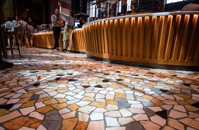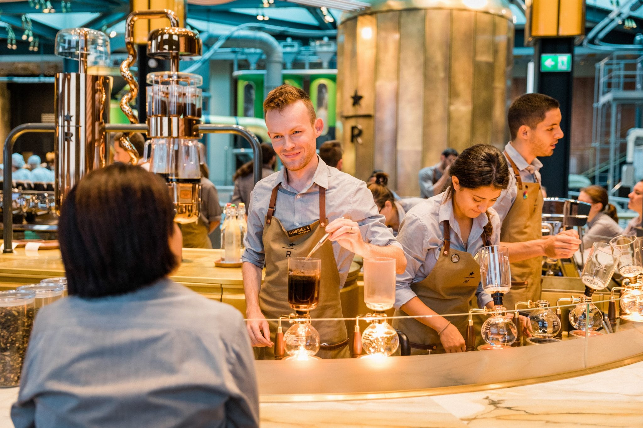 All’interno della Reserve Roastery c’è una grande tostatrice sempre in funzione, il bancone per il caffè, l’angolo per i prodotti da forno dell’italiano Princi, il bar Arriviamo per l’aperitivo con cocktail e vini e lo Scooping Bar per chi vuole acquistare il caffè appena tostato.