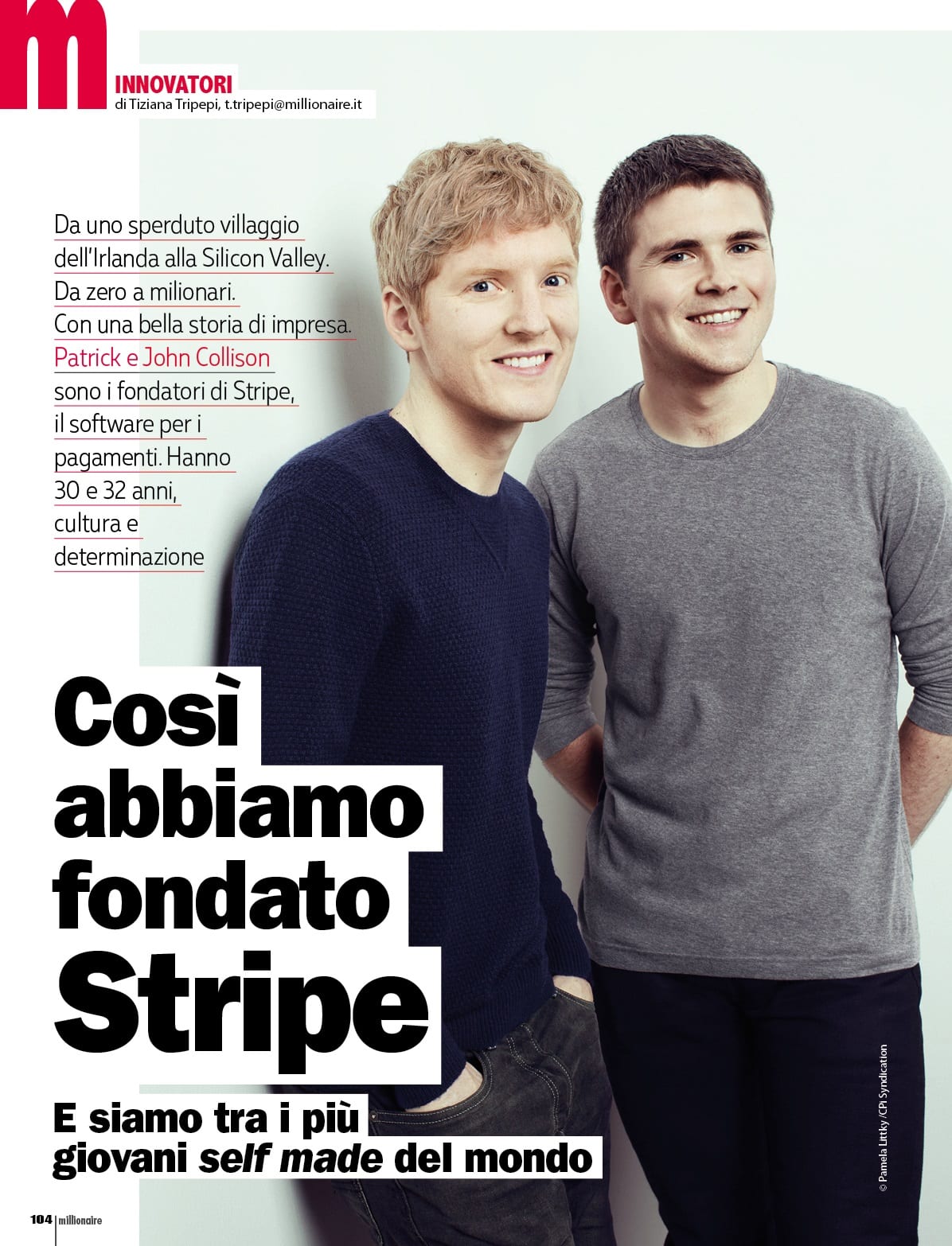 Loro sono Patrick e John Collison, hanno rispettivamente 32 e 30 anni, e una storia meravigliosa. La raccontiamo sul numero di Millionaire di marzo, adesso in edicola.