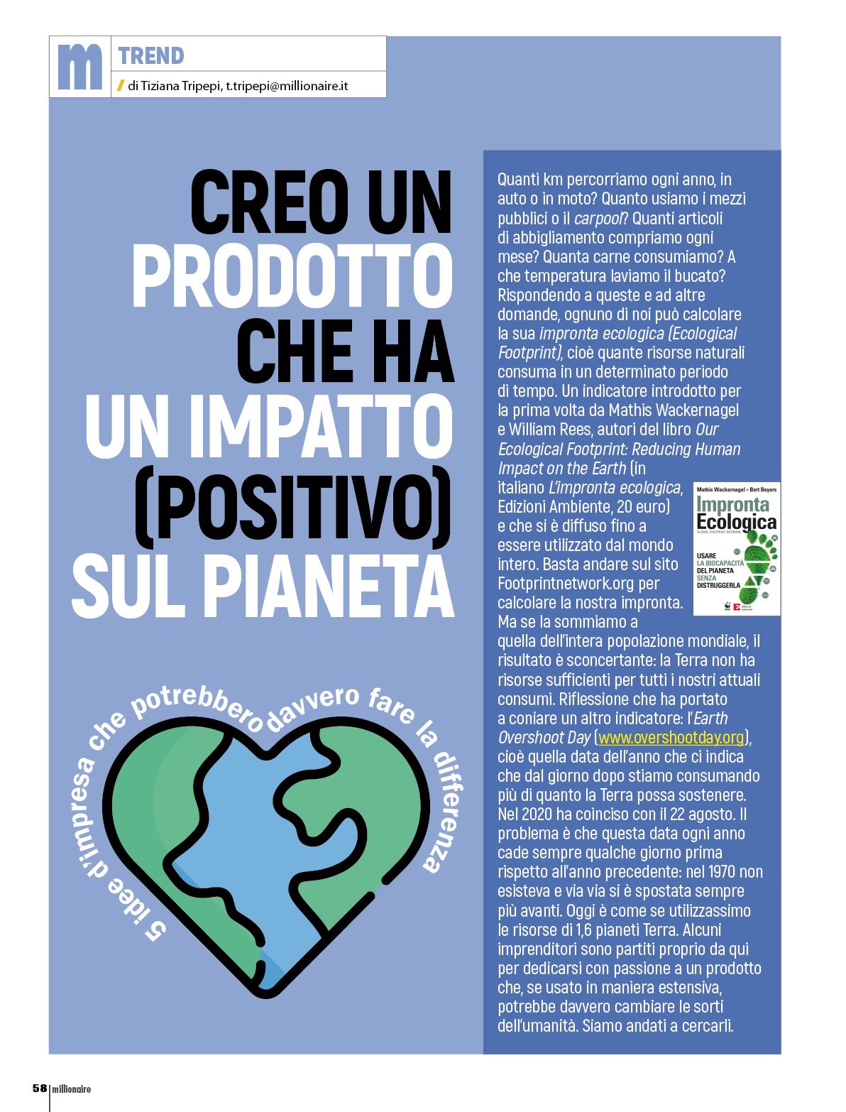 Tratto dall’articolo “Creo un prodotto che ha un impatto (positivo) sul Pianeta”. Pubblicato su Millionaire di giugno 2021.