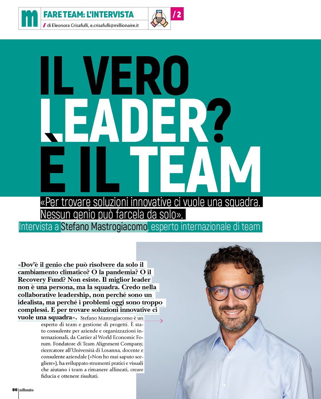 Tratto dall’articolo “Il vero leader? È il team” pubblicato su Millionaire di maggio 2021.