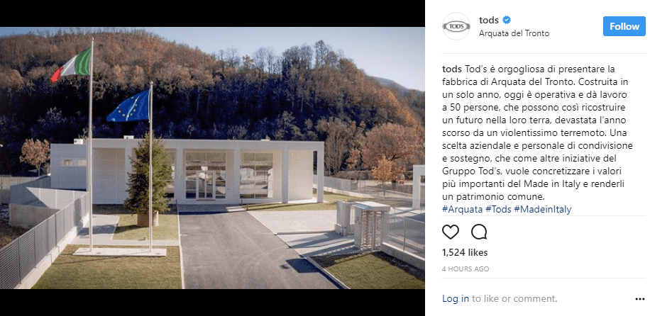 La promessa fatta lo scorso anno, subito dopo il terremoto che ha colpito il centro Italia, è mantenuta. Diego Della Valle ha inaugurato oggi un nuovo stabilimento di Tod’s ad Arquata del Tronto, in provincia di Ascoli Piceno. 2000 metri quadrati destinati alla produzione di calzature. Un edificio costruito in meno di un anno, con un investimento di circa 10 milioni di euro, pronto a ospitare 100 dipendenti. Ai 50 già impiegati «seguiranno altri man mano che saranno formati» ha spiegato l’imprenditore. «Sono entusiasti e chiedevano solo di lavorare. Questo desiderio l’abbiamo esaudito. E farlo significa per loro poter pensare a una vita dignitosa».
