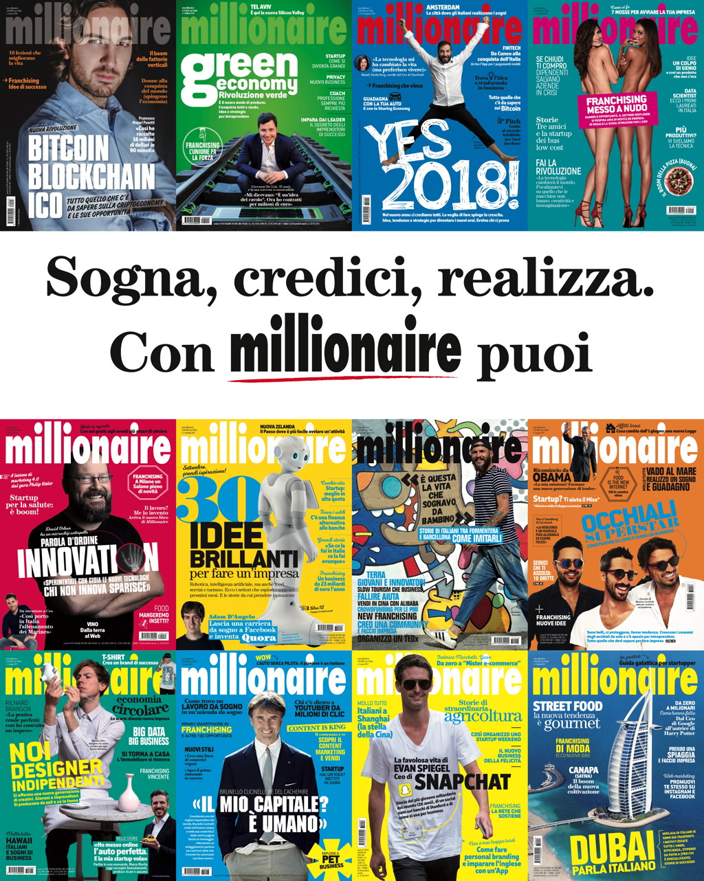 Millionaire anticipa tendenze di business e nuovi mercati. Tanti i settori trattati: digitale, ristorazione, food, agricoltura, servizi, tecnologia, e per diverse forme di impresa: tradizionale, online, startup, franchising.