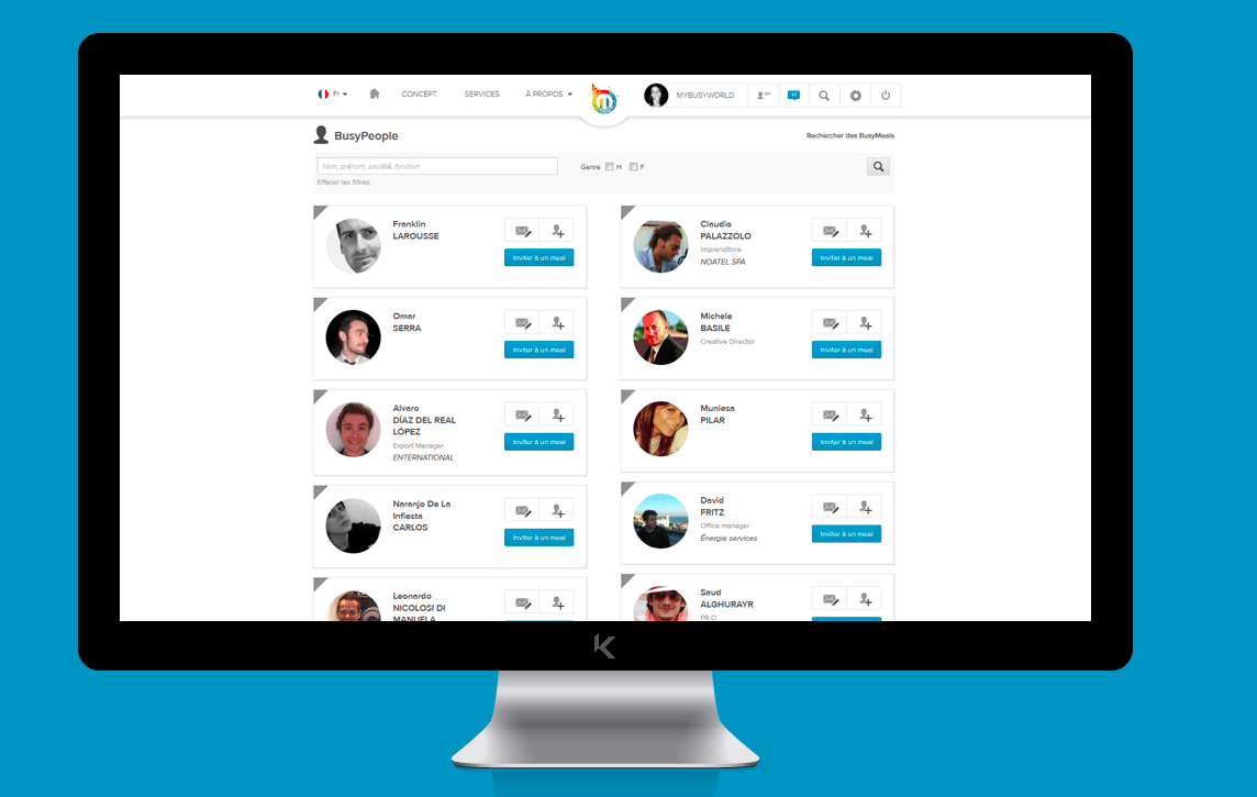 L’iscrizione sarà sempre gratuita. Gli utenti possono registrarsi, organizzare cene (busymeal) e aggiungere alla loro rete professionale le persone incontrate durante gli eventi conviviali. Con un forfait mensile di 3,75 euro accedono alla funzione premium che gli consente di contattare e aggiungere anche sconosciuti».