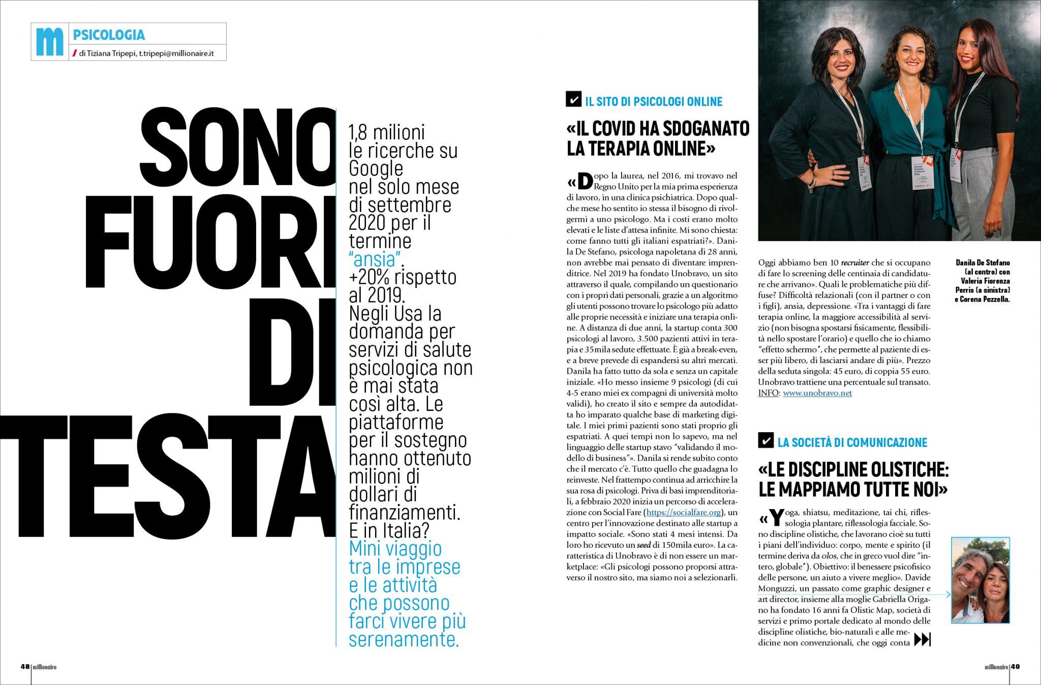 Danila, laurea in Psicologia a Roma, ha avuto l’idea di Unobravo già nel 2016. «Mi trovavo nel Regno Unito per la mia prima esperienza di lavoro, in una clinica psichiatrica» ci ha raccontato tempo fa in un’intervista. «Dopo qualche mese ho sentito io stessa il bisogno di rivolgermi a uno psicologo. Ma i costi erano molto elevati e le liste d’attesa infinite. Mi sono chiesta: come fanno tutti gli italiani espatriati?». Così nel 2019 ha creato Unobravo.